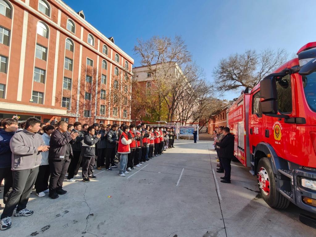 第34个全国"119"消防日来临之际,为筑牢校园安全防线,强化师生消防安全意识与应急处置能力,营造“关注消防、重视安全”的校园氛围,11月8日,动物科技学院联合学校保卫处,邀请昌吉市农高区消防救援大队在校本部学生2号楼公寓共同组织开展了消防应急疏散演习。学院党委书记丑武江、学校保卫处处长庄道坤、学校保卫处消防科科长赵文刚以及学院300余名师生共同参与本次演习活动,活动由党委副书记刘涛主持。